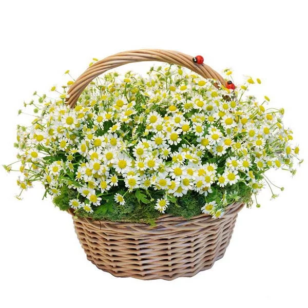 Стандартный: матрикария (мелкая ромашка) - 35 шт., корзина большая, оазис.